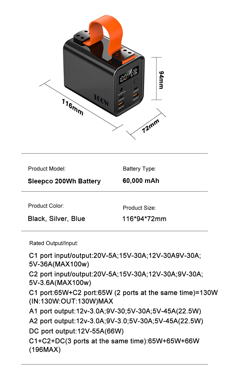 Capacity: 60,000 mAh (200 Wh)