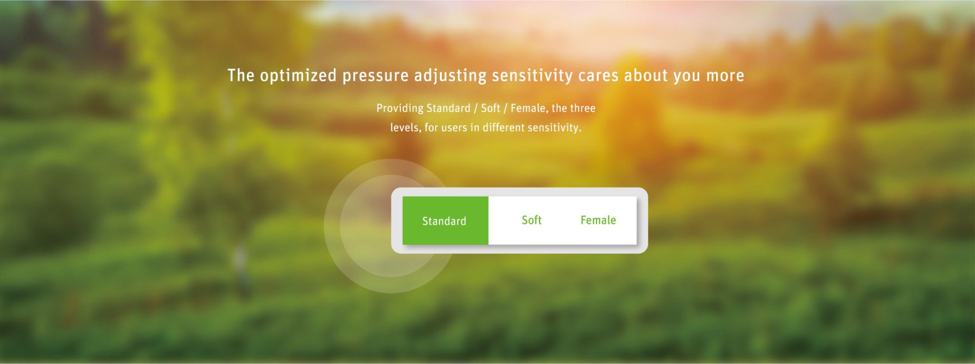 Pressure Adjusting sensitivity – Three levels of adjustable sensitivity which include standard, soft, and female that change the airflow pressure levels based on her needs.