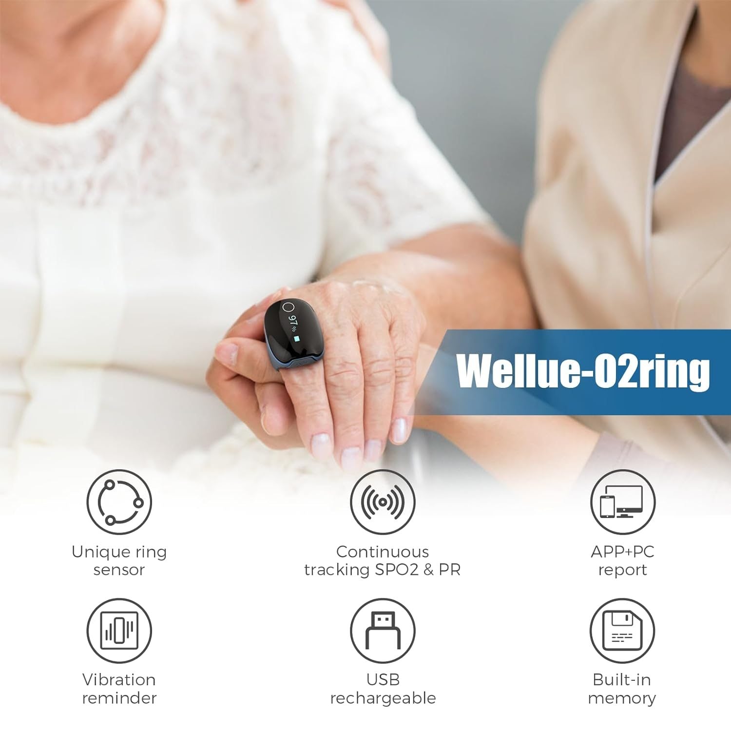 Viatom Wellue O2 Ring. Oxygen SPO2 Saturation Tracking.